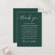 Une célébration de mariage élégante merci jeu de cartes de réception. Personnalisé avec votre message de remerciement spécial mis en typographie stylisée sur un arrière - plan émeraude. Un gardien spécial vous remercie pour vos invités. Conçu par Thisisnotme©