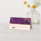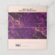 Carte avec un beau motif abstrait au design marbré. Des couleurs violettes riches se mélangent avec des rubans tourbillonnants d'or faux, mélangeant et mélangeant les couleurs tout au long du design. Une couche de couleur pêche sous le motif avec une bande d'or-feuille élégante entre eux.