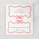 Ajoutez une touche charmante à votre décoration de table avec ces cartes de placement personnalisées pour enterrement de vie de jeune fille, parfaites pour une célébration fantaisiste. Avec un cadre ondulé dessiné à la main et un adorable nœud rouge vif, ces cartes capturent l'amusement et la romance de votre événement. Le design ludique et inspiré des gribouillages, ainsi que la police d'écriture manuscrite, créent une atmosphère décontractée mais élégante, parfaite pour le jour spécial d'un couple. Personnalisez le verso de la carte avec les noms des mariés pour la rendre encore plus unique. Que vous organisiez une fête sur le thème italien "C'est l'amour" ou que vous cherchiez simplement quelque chose de créatif, ces cartes de placement sont le détail parfait pour guider les invités à leur place avec style. Idéal pour ajouter une touche personnelle et inspir