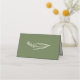 Une carte simple et moderne en mariage vert olive, avec des écritures sur l'avant et un élément floral sur le dos.