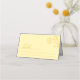 This place card features a soft butter yellow background with a simple modern layout. A small floral accent adds an elegant touch while keeping the design clean and minimal. The typography is clear and easy to read, making it perfect for guiding guests to their seats. This design pairs well with spring and summer wedding themes.