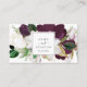Cette carte de mariage plat aux fleurs mauves est parfaite pour un mariage moderne. L'élégant design floral présente des fleurs de tulipe violet et blanc de prune foncée avec des feuilles vert émeraude et des accents de feuilles d'or. Personnalisez le dos des cartes de lieux avec les noms de la mariée et du marié et la date. Achetez en gros et écrivez à la main les noms des invités et les numéros de table sur les cartes imprimées à leur arrivée.