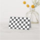 These place cards are ready for you to write in the name of your guest(s) and their table number. The white box with a black frame for writing in your info is set against a black and white checkerboard background with black squares with a painted look and plain white squares making up the check design.