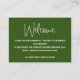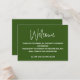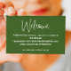Cette carte d'accueil moderne et ludique, blanche et verte, placée dans votre sac de bienvenue ou votre panier dans leur logement, est une bonne façon de remercier vos invités de l'extérieur de la ville pour le voyage qu'ils ont dû faire pour se rendre à votre mariage.