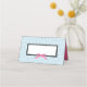 Cette carte de tente classique moderne comporte un ruban rose chic sur un rectangle de bordure noire contre un arrière - plan de pois bleu clair et noir sur l'avant/l'extérieur et un rose solide à l'intérieur duquel vous pouvez garder ou retirer. Il s'agit d'une carte de visite polyvalente que vous pouvez utiliser pour tout événement tel que mariages, fêtes, baby showers, douches nuptiales ou même pour vos réunions et conférences. Cette carte est facile à customiser; pour ajouter du texte, cliquez sur le bouton "Personnaliser". *Veuillez noter que le filigrane Zazzle qui apparaît dans l'aperçu du zoom n'apparaîtra pas sur le produit imprimé final © Rosewood et Citrus