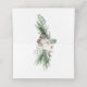 L'agencement rose aquarelle avec feuillage à feuillage persistant de pin orne le dessus et l'intérieur de cette carte. Style simple et élégant pour tout mariage de saison hivernale. Faites de vos paramètres de place un endroit spécial ! Personnalisez le nom des couples pour un thème de mariage d'hiver ou un dîner d'anniversaire. Front a des directives pour le nom manuscrit et le numéro de table de l'invité.