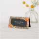 Cartes de place Rustique moisson mariage avec un arrière - plan en bois chic pays, pièce centrale en damier noir, corde, citrouilles halloween, feuillage d'automne, glands, un éparpillement de feuilles d'automne, lumières à corde et un modèle de carte de place mariage personnalisé facile à personnaliser.