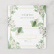 Un beau décor de verdure rustique avec des fleurs vintages blanches et un cadre doré élégant. Une carte de mariage moderne botanique avec fleurs blanches, feuilles verts et dorures, idéale pour les mariage à thème. Des invitations de mariage et d'autres articles de papeterie sont également disponibles.