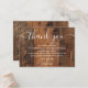Un élégant mariage en bois de grange rustique vous remercie la carte de réception, personnalisée avec un message spécial et les noms de la mariée et du marié. Conçu par Thisisnotme©