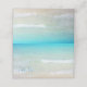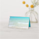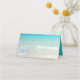 Cartes de table pliées scène de plage avec eau de l'océan turquoise et petites vagues sur le rivage. À l'intérieur est un bleu tropical uni.
