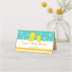 Cette jolie carte de place dispose d'un adorable canard jaune et d'un canard en bulles de bain savonneuses blanches sur un arrière - plan vert vif avec un ruban orange et des rayures jaunes. Le texte combine écriture manuscrite et polices sans serif pour un look élégant et moderne. C'est parfait pour un Baby shower.
