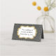 Carte de lieu pliée en gris Chalkboard avec un arrière - plan de pois en or. Des images d'une plaque de texte dorée, sur le devant est prêt à personnaliser à la main pour chaque invité de votre mariage. Le dos de la carte a la même plaque dorée avec le texte noir personnalisé prêt à changer pour lire ce que vous voulez.