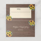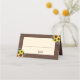 Ce design rustique de campagne comprend des lampes à cordes blanches dorées et de la dentelle avec des tournesols jaunes, des roses bleu marine et le souffle de bébé blanc contre un arrière - plan en bois de grange brun foncé. Les noms de la mariée et du marié apparaissent dans un script élégant. L'arrière comprend une ligne où vous pouvez remplir le nom du client et un espace ci-dessous où vous pouvez remplir le numéro de table. Vous pouvez personnaliser cet article pour votre propre mariage en modifiant le texte du modèle de produits.