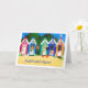 Carte d'anniversaire avec "Joyeux anniversaire" en gallois et quelques cabanes de plage d'un collage en papier peint à la main par Judy Adamson. Je peux facilement changer le texte avant sur demande et l'intérieur est laissé vide pour votre propre message.