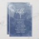 Aidez vos invités à trouver leur table avec cette élégante carte marine et bleu couleur aquarelle plan avec les noms des invités. Cartes recto-verso pour que les clients puissent chercher leur nom à l'avant ou à l'arrière. Libérez de l'espace tout autour en vous donnant la liberté d'utiliser des clips ou un trou de perforation pour accrocher des écrans, ou d'utiliser le support/cadre de table. Exquise marine et bleu aquarelle lavez arrière - plan et texte blanc. Détails de calligraphie manuscrite moderne. Une partie de notre collection "Mariage de monogramme botanique de couleur d'eau marine" avec une variété de produits de coordination disponibles, y compris les cartes de numéro de tableau et les menus et plus encore. Visitez la collection entière avec ce lien : https://www.zazzle.com/collections/navy_watercolor_botanical_monogram_wedding-119781162008756698