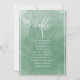 Aidez vos invités à trouver leur table avec cette élégante carte de couchage couleur verte avec le nom des invités. Cartes recto-verso pour que les clients puissent chercher leur nom à l'avant ou à l'arrière. Libérez de l'espace tout autour en vous donnant la liberté d'utiliser des clips ou un trou de perforation pour accrocher des écrans, ou d'utiliser le support/cadre de table. Exquise couleur verte laver arrière - plan et texte blanc. Détails de calligraphie manuscrite moderne. Une partie de notre collection "Mariage de monogrammes botaniques d'aquarelle verte" avec une variété de produits de coordination disponibles, y compris les cartes de numéro de table et les menus et plus encore. Visitez la collection entière avec ce lien : https://www.zazzle.com/collections/green_watercolor_botanical_monogram_wedding-119061961538101267