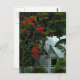 Cette carte postale présente une photo brossée à sec d'un arbre Royal Poinciana aux fleurs rouges vifs, surplombant un toit en étain typique de Key West.