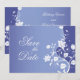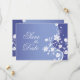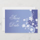 Une carte de pré-réservation vraiment charmante. Une tige de fleur blanche atteint la hauteur de cette invitation sur un fond violet-bleu. Des fleurs s'étirent pour encadrer vos informations personnalisées. Disponible en couleurs alternatives avec des produits assortis.