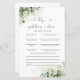 Carte de prédictions Baby shower verdoyant. Ce Baby shower Invitation élégant et élégant présente de magnifiques aquarelles peintes à la main. Trouvez les articles correspondants dans la Collection Florale Eucalyptus de verdure.