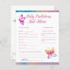Vous cherchez la meilleure façon d'ajouter une touche de papillons à votre baby shower? Regardez notre carte de prédictions et de conseils pour les bébés papillons mignons! Ces cartes-conseils baby showers ont un bel effet de parties scintillant numérique coloré, des fleurs et des papillons parfaits pour un baby shower de printemps! Si vous cherchez quelque chose de spécial pour divertir les invités, notre carte de prédiction pour bébé est une idée drôle, être un bon gardien. Le texte est modifiable.