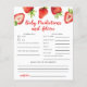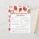 Belle fraise thème baby shower prédictions bébé et carte de conseil avec illustrations du fruit de fraise rouge. Les textes sont modifiables. Un jeu parfait à jouer pendant la douche et sera certainement un grand gardien! La carte demande aux invités de prédire à quoi ressemblerait le bébé.