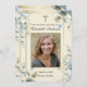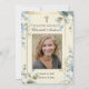 Doté d'une belle carte de prière photo de commémoration funéraire catholique au design floral bleu et de la Bienheureuse Mère Marie tenant le Bébé Jésus. Tout le texte et les polices peuvent être modifiés.