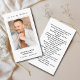 Dimensions cartes de visite : 3,5 po x 2,0 po. Cette simple carte de prière commémorative peut être donnée en souvenir lors d'une célébration de la vie ou d'un service funéraire ou envoyée en hommage spécial à ceux qui n'ont pas pu y assister. Personnalisez cette carte avec une photo préférée, le nom de votre proche, les dates et votre choix de prière ou de poème. Facile à customiser.