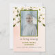 Ce design de prière romantique présente une aquarelle blanche roses et un feuillage verdoyant sur arrière - plan rose pêche clair avec texte vert et noir élégant. Ajouter la photo dans le cadre verdoyant. Le revers de la carte poème est rose pêche clair avec des fleurs blanches chic, cadre vert ang avec texte de prière.