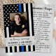 En Mémoire Amoureuse. Carte de prière commémorative de la police de la Ligne Bleue Mince. Personnalisez cette carte de prière commémorative de la police avec la photo, le nom et les dates de votre policier. Parfait pour les services de police d'honorer un officier déchu, et les gardiens de mémoriaux d'application de la loi. Retour citation "Prière d'un policier" S'il vous plaît tendre la main si vous voulez une prière personnalisée. DROIT D'AUTEUR © 2020 Judy Burrows, Black Dog Art - Tous droits réservés. Carte de prière commémorative de l'officier de police de la ligne bleue mince