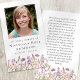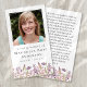 Cette carte de poème commémorative peut être remise en souvenir lors d'une célébration de la vie ou d'un service funéraire ou en hommage spécial à ceux qui n'ont pas pu y assister. Cette carte peut être personnalisée avec une photo préférée et votre choix de prière ou de poème. La photographie est à des fins d'illustration et peut être changée en une de vos propres.