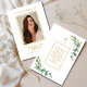 Dimensions de la carte : 3,5 po x 5 po. Photo funéraire sympathie cartes de prière mémorial, Design met en scène d'élégants feuilles de verdure aquarelle qui encadrent la prière. Facile à customiser photo et prière au dos de la carte.