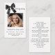 Arrière - plan blanc, et espace pour votre photo. Décoré d'un arc noir. Personnalisez et ajoutez le nom, les dates, le texte et la prière.