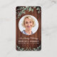 Cartes de prière funéraire en bois rustique Eucalyptus. Cette carte de prière funéraire élégante et rustique présente une verdure d'eucalyptus sur un design en bois rustique. Avant "En souvenir affectueux" Personnalisez cette carte de prière funéraire avec la photo, le nom et les dates de votre proche, ainsi que vos sentiments. Arrière ~ Poème "Miss Me", qui peut être personnalisé, veuillez nous contacter si vous souhaitez un design avec un poème spécifique autre que celui-ci. Cette carte de prière funéraire sera un souvenir précieux, pour les services funéraires et la célébration de la vie. COPYRIGHT © 2020 Judy Burrows, Black Dog Art - Tous droits réservés. Carte de prière funéraire mémorial en bois rustique avec verdure.