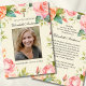 Cette carte de prière funéraire élégamment conçue comporte une bordure florale sereine entourant une photo chère de votre être cher, dressée contre un arrière - plan texturé. La carte est complétée par un poignant symbole croisé en haut et un texte personnalisable qui comprend le nom et les dates du défunt. Elle sert de belle gardienne pour honorer leur mémoire au service funéraire et peut être utilisée comme un signet ou un rappel dans vos prières quotidiennes."