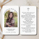 Dimensions cartes de visite : 3,5 po x 2,0 po. Cette simple carte de prière commémorative peut être donnée en souvenir lors d'une célébration de la vie ou d'un service funéraire ou envoyée en hommage spécial à ceux qui n'ont pas pu y assister. Personnalisez cette carte avec une photo préférée, le nom de votre proche, les dates et votre choix de prière ou de poème. Facile à customiser.
