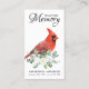 Aquarelle Cardinal et Roses Blanches avec Cartes de prières funéraires Sympathiques Eucalyptus. Cette carte de prière commémorative moderne mais élégante présente un oiseau cardinal rouge dans un bouquet de roses blanches. Avant "In Loving Memory" Personnalisez cette carte de prière funéraire commémorative avec vos proches nom et date, et sentiment. Retour ~ Poème 'Puissiez-vous toujours marcher dans Sunshine', qui peut être personnalisé, s'il vous plaît tendre la main si vous voulez un design avec un poème spécifique autre que. Cette carte de prière commémorative sera un souvenir précieux, pour les services funéraires et la célébration de la vie. DROIT D'AUTEUR © 2020 Judy Burrows, Black Dog Art - Tous droits réservés. Carte de prière funéraire commémorative Cardinal Floral Roses