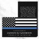 Cette carte de prière photographique personnalisable pour les policiers rend hommage à la vie et au service d'un officier tombé. Le devant affiche le nom de l'officier, les dates de naissance et de fin de la montre, et le drapeau bleu mince de la police. Le dos comprend une prière personnalisable. Cette carte est un rappel durable du courage et du sacrifice de l’officier, ce qui procure un réconfort à la famille, aux amis et aux collègues.