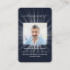 Un arrière - plan bleu foncé, Espace pour votre photo. Poutres claires, derrière la photo. Personnalisez et ajoutez le nom, les dates, le texte et la prière.