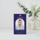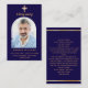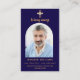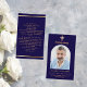 Un arrière - plan bleu foncé, une fausse croix d'or et un cadre en arc pour une photo. Personnalisez et ajoutez le nom, les dates, le texte et la prière.