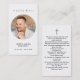 Dimensions cartes de visite : 3,5 po x 2,0 po. Cette simple carte de prière commémorative peut être donnée en souvenir lors d'une célébration de la vie ou d'un service funéraire ou envoyée en hommage spécial à ceux qui n'ont pas pu y assister. Personnalisez cette carte avec une photo préférée, le nom de votre proche, les dates et votre choix de prière ou de poème. Facile à customiser photo et texte.