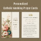 Doté d'un magnifique design floral avec le verset des écritures ...et les deux seront en une seule chair" des Éphésiens 5:31. Une prière est à l'arrière pour la mariée et le marié avec une image dorée des "TROIS COEURS...Jésus, Marie et Saint-Joseph.