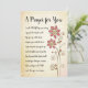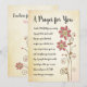 Encouragez quelqu'un en leur faisant savoir que vous priez pour eux avec ce modèle de typographie élégante entièrement modifiable avec le message : "Une prière pour toi. J'ai dit une PRIÈRE pour toi aujourd'hui. J'ai prié pour que Dieu te porte dans Sa main, te réconforte avec Son Amour, essuie chaque larme de tes yeux et te donne la force de faire face à la journée. J'ai prié pour que Dieu te rappelle que tu n'es jamais seul et que tu es AIMÉ plus que tu ne peux l'imaginer." Le design est accentué par une belle illustration florale sur le côté droit avec un fond de texture de papier numérique aquarelle. L'intérieur peut être personnalisé avec votre propre message personnel. Le verso comporte ce message : "Je suis là pour toi et je me soucie de toi." Espace ci-dessous pour votre nom.