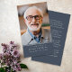 Cette carte de prière commémorative peut être remise en souvenir lors d'une célébration de la vie ou d'un service funéraire ou en hommage spécial à ceux qui n'ont pas pu y assister. Cette carte peut être personnalisée avec une photo préférée et votre choix de prière ou de poème.