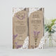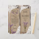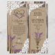 Bois rustique avec dentelle blanche et bouquet de fleurs de lavande en pot de mason avec burlap, dentelle, et tailles de ficelle sur le texte en lin look arrière - plan et gravure de coeur avec programme de mariage de style campagnard monogramme.