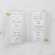 Jolis roses rouges et cadre à motif de feuilles d'or. Lorsque vous et votre futur conjoint commencerez à descendre l'allée, assurez-vous que vos amis et votre famille sont prêts à célébrer chaque étape de votre voyage avec ces élégants programmes de mariage pliés. Cette belle carte de programme est prête à être personnalisée. Personnalisez la carte en modifiant le texte dans les champs fournis sur toutes les pages. Vous pouvez changer la police, la taille et la couleur, ainsi que le type et le style de papier.