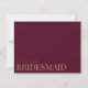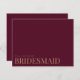 Ces cartes de proposition de femme de chambre minimaliste élégantes sont dotées d'une typographie de script moderne et d'un texte propre pour un design bordeaux et or simple et élégant que vous aimerez. Ajoutez du texte personnalisé pour fournir toutes les informations supplémentaires nécessaires à vos invités. N'hésitez pas à m'envoyer un message pour toute question liée au design - Je serai heureux de vous aider!