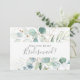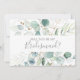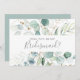 Cette carte de proposition de femme de chambre verte et dorée est parfaite pour un mariage moderne. L'élégant design botanique présente des eucalyptus aquarellés clairs et aquarellés, agrémentés de feuilles de parties scintillant en or blanc. Customisez la carte avec le nom de la mariée et de la demoiselle d'honneur. Personnalisez le dos de la carte avec un message personnalisé.