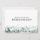 Cette carte de proposition de femme de chambre verte et dorée est parfaite pour votre élégant mariage de forêt boho. Avec un paysage rustique vert émeraude d'aquarelle parsemé d'arbres, d'oiseaux et de reflets de feuille d'or. C'est exactement ce que vous cherchez pour compléter votre mariage unique de destination moderne.