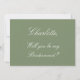 Carte de proposition Stylish Sage Green Bridesmaid, s'il vous plaît personnaliser les deux côtés de la carte comme souhaité, en utilisant le modèle de personnalisation en ligne avant de commander. La conception peut également être personnalisée pour d'autres rôles de gardienne de mariage, comme Flower Girl, Maid of Honor/Honor et Matron of Honor/Honor.