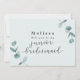 Simple minimaliste Eucalyptus Frame Script Mariage junior bridesmaid carte de proposition de partie de mariée. Idéal pour votre jardin de printemps ou d'été ou papeterie mariage à thème en plein air. Dans une palette de couleurs douce et subtile de vert d'eau turquoise, menthe pastel, gris bleu poussiéreux et blanc classique. L'élégante police de calligraphie de script est une caractéristique du mot junior bridesmaid. Ce design est parfait pour un mariage de ferme, de campagne ou de jardin. Cartes d'information Mariage Eucalyptus simples à envoyer aux invités. Un modèle facile à customiser pour votre papeterie mariage do-it-yourself et abordable. ***** Contactez-moi Pour une personnalisation individuelle gratuite (Polors Fonts Etc)***** @lulubellpaperie@gmail.com ~ Consultez ma boutique ou la collection ci-dessous - pour voir la suite entière pour ce design !